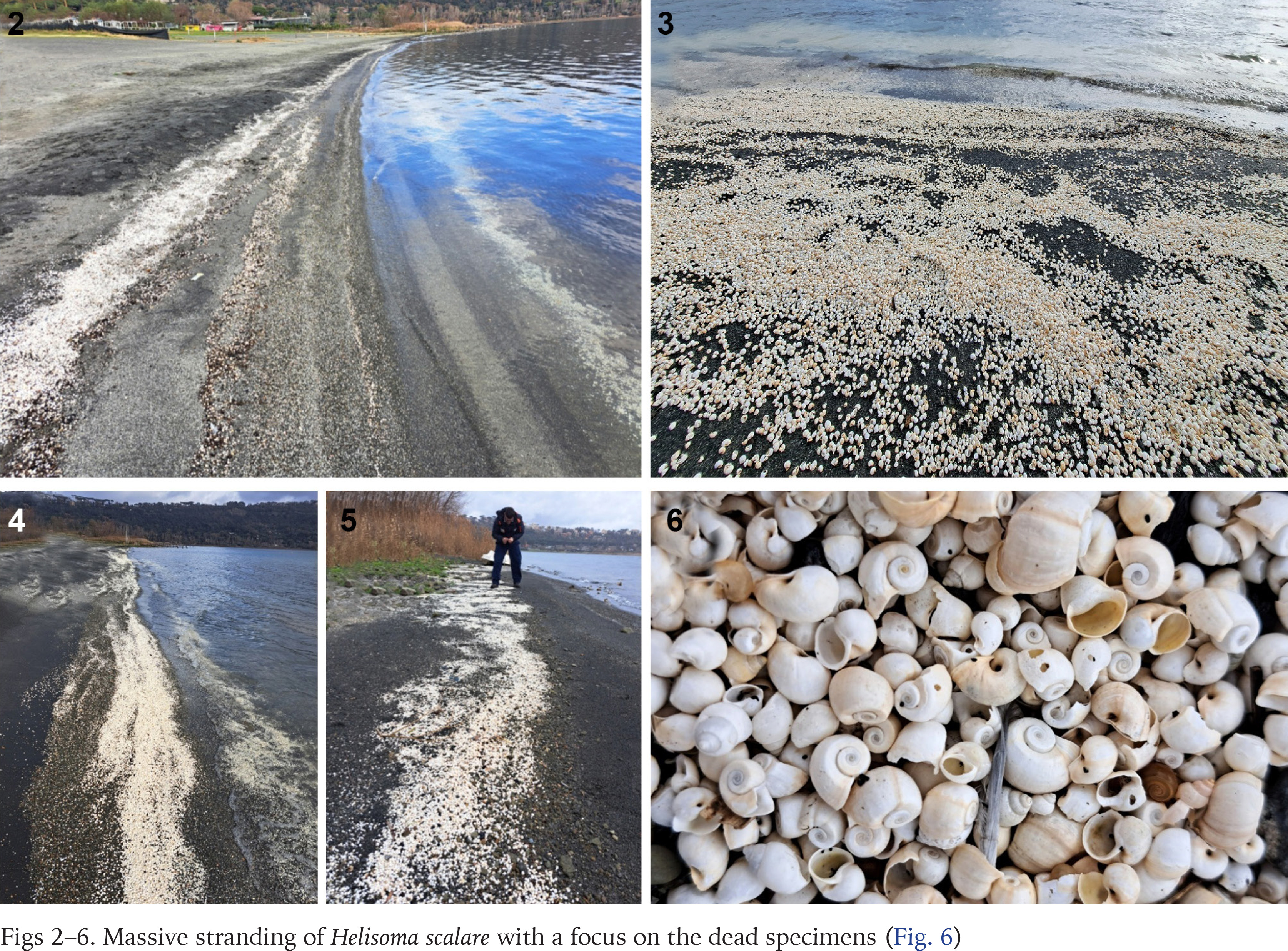 In this study, an anomalous and massive stranding of H. scalare shells was investigated, with a focus on the possible causes, the taxonomic status of this species, and the current ecological conditions of Lake Albano.